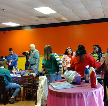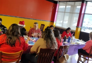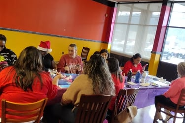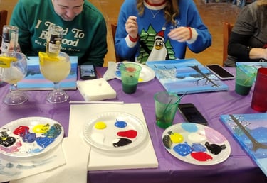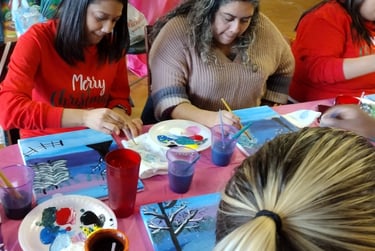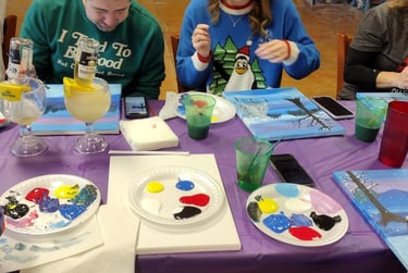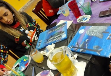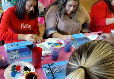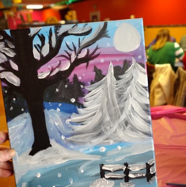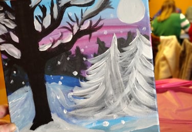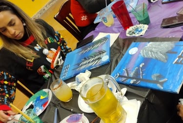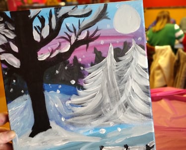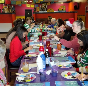 Please enjoy the photos that I am posting from a class that I held last year for a company's Christmas party. We had an absolute BLAST!!!! Everyone did absolutely amazing on their paintings and we had a great day doing them. I enjoyed this class so much!