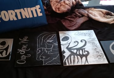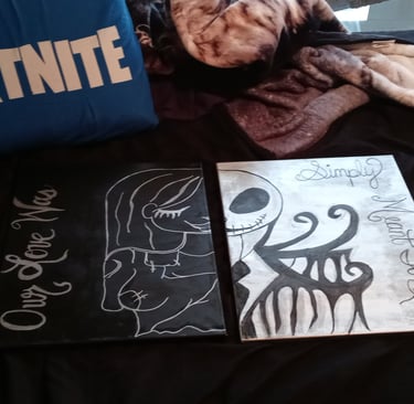 Here are a few of the paintings and sketches that have been done by myself, my children, my nieces . etc. EVERYONE has an artistic streak...it just takes someone to help nurture and bring that out. Let us here at Beautiful Tragedy Creations help you find that artistic side and create some amazing pieces!